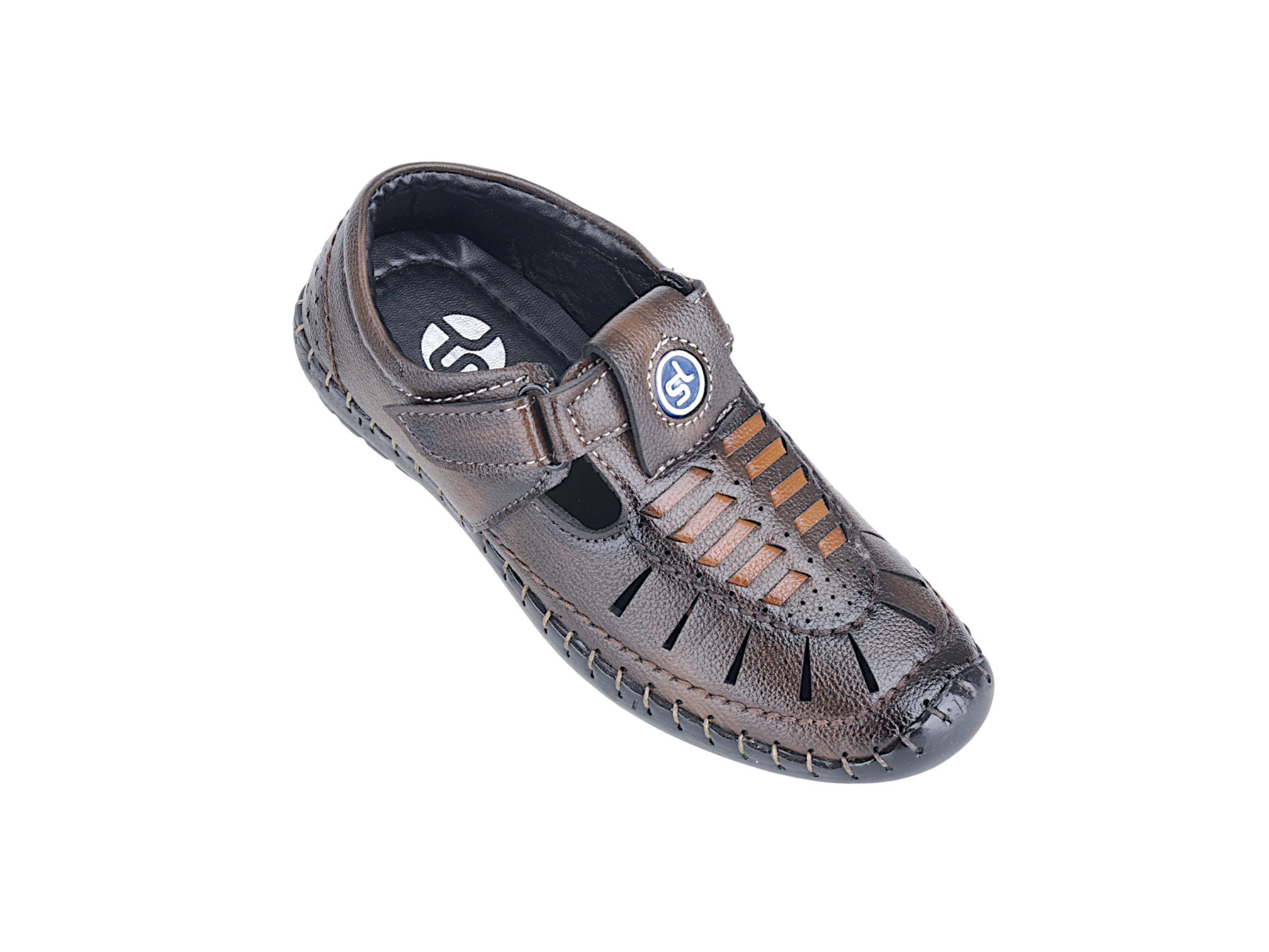 Model No - 93909 MRP - 499/- Size - 11-1 Kids fisherman brown sandal Upper Material - Non Leather Sole - Pvc Air Max Kids Fisherman Brown Sandal – Durable Comfort for Active Young Feet Crafted for children aged 6-10 years, this brown fisherman sandal combines traditional design with practical functionality. The sturdy construction ensures reliable support during outdoor adventures, while the classic fisherman silhouette offers timeless style. Designed with growing feet in mind, the sandal provides secure footing and breathability for all-day wear. Perfect for beach outings, casual play, or everyday exploration, this versatile brown sandal is an essential addition to any child's footwear collection.
