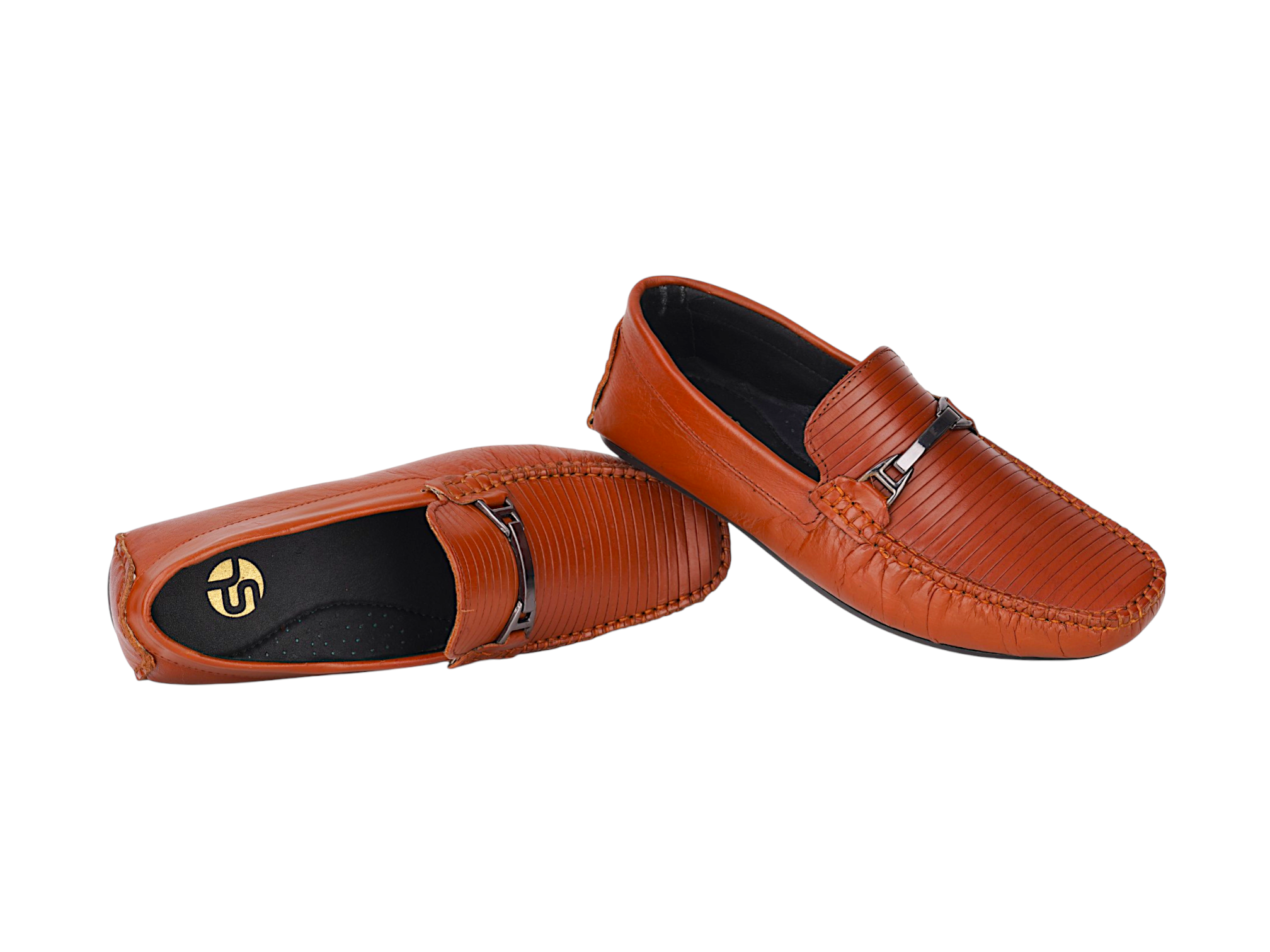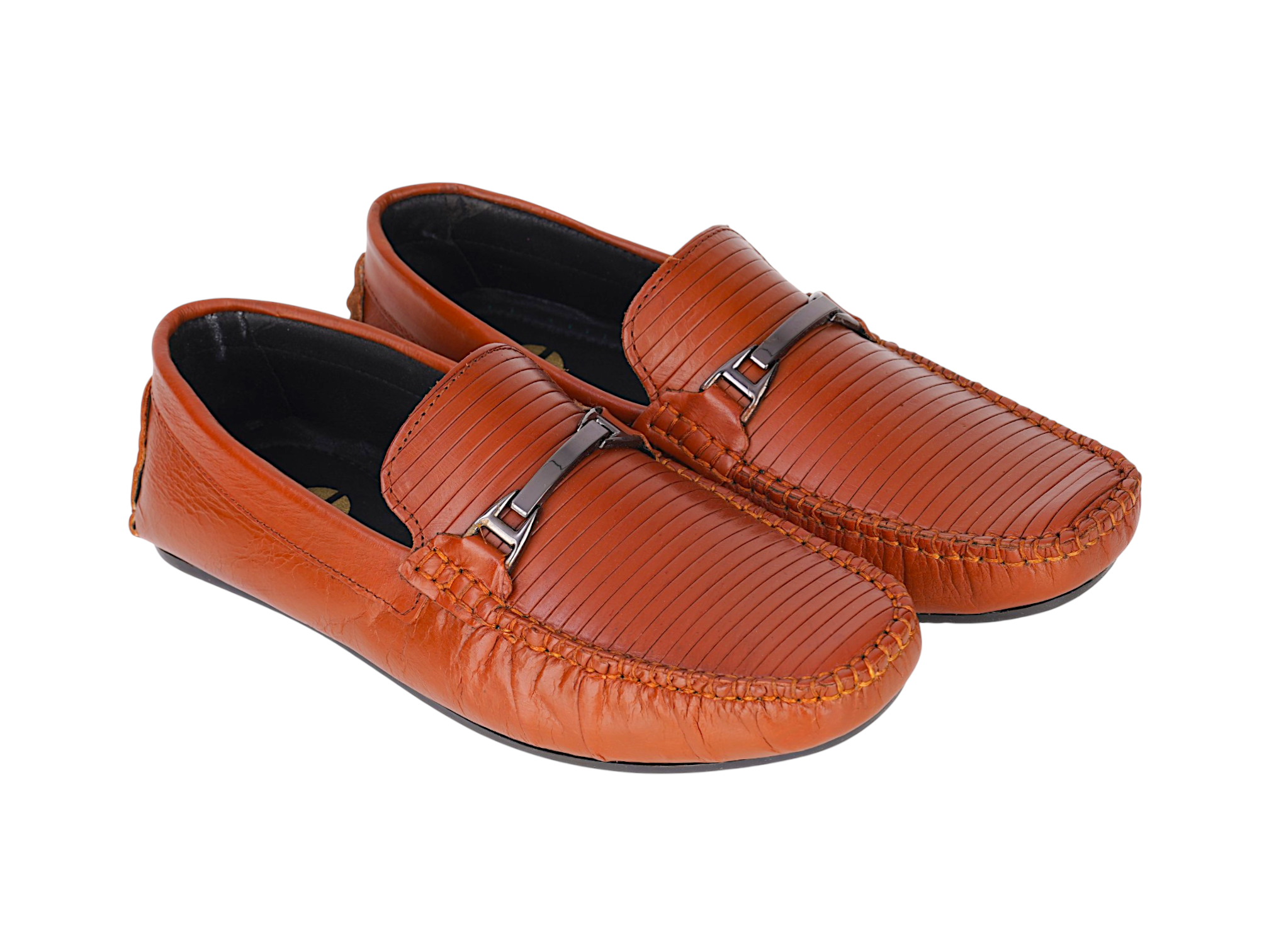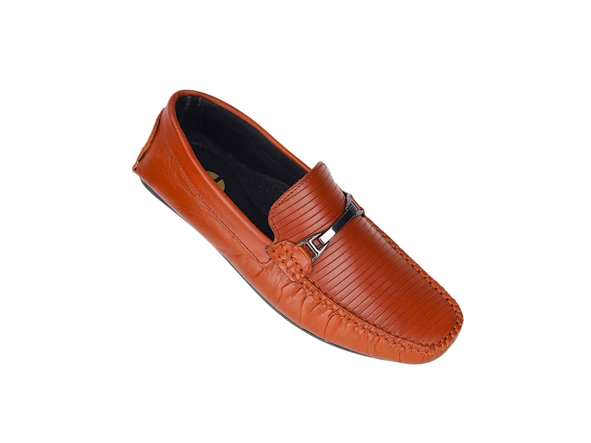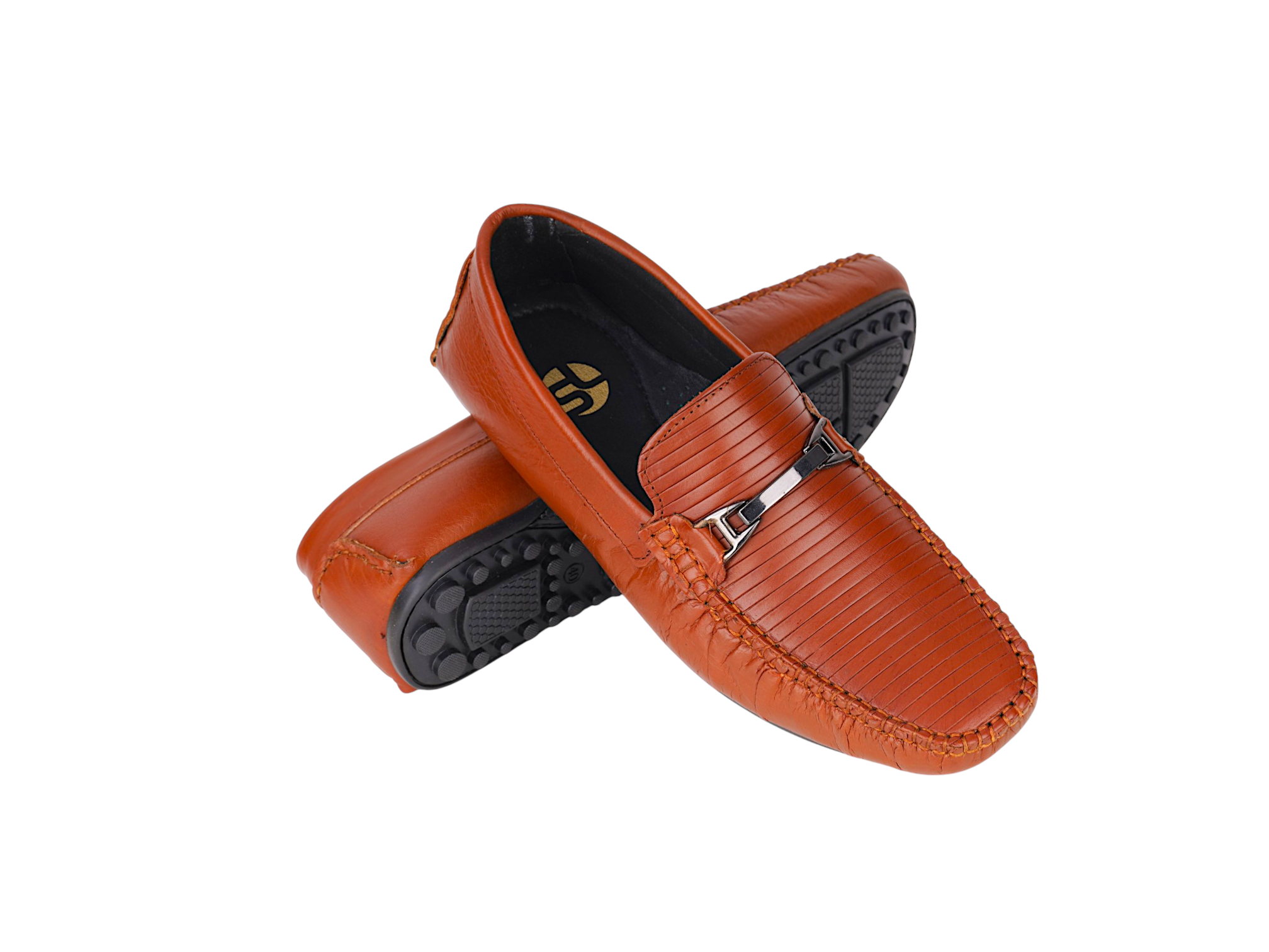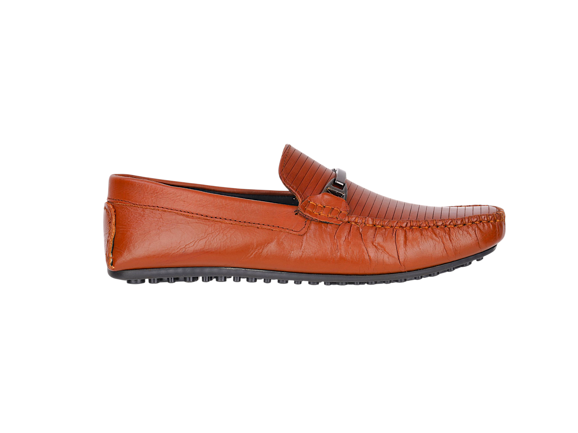 Crafted from premium genuine leather, the upper provides a rich finish and long-lasting wear. The textured front design with elegant metal detailing enhances its sophisticated look, while the slip-on style ensures convenience and ease of use. The TPR sole offers flexibility, grip, and all-day comfort.