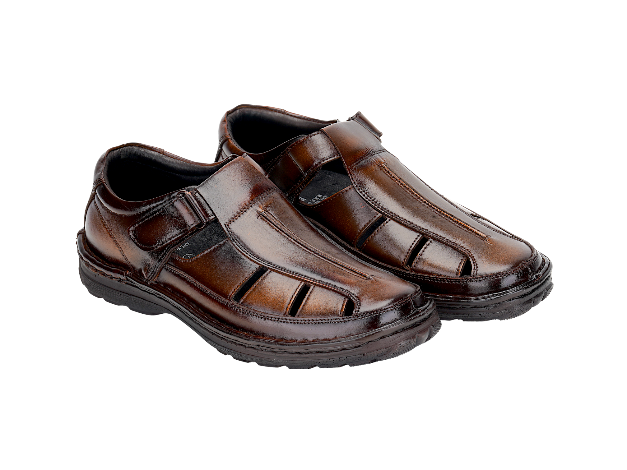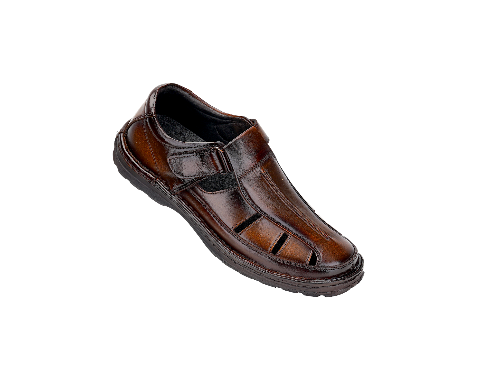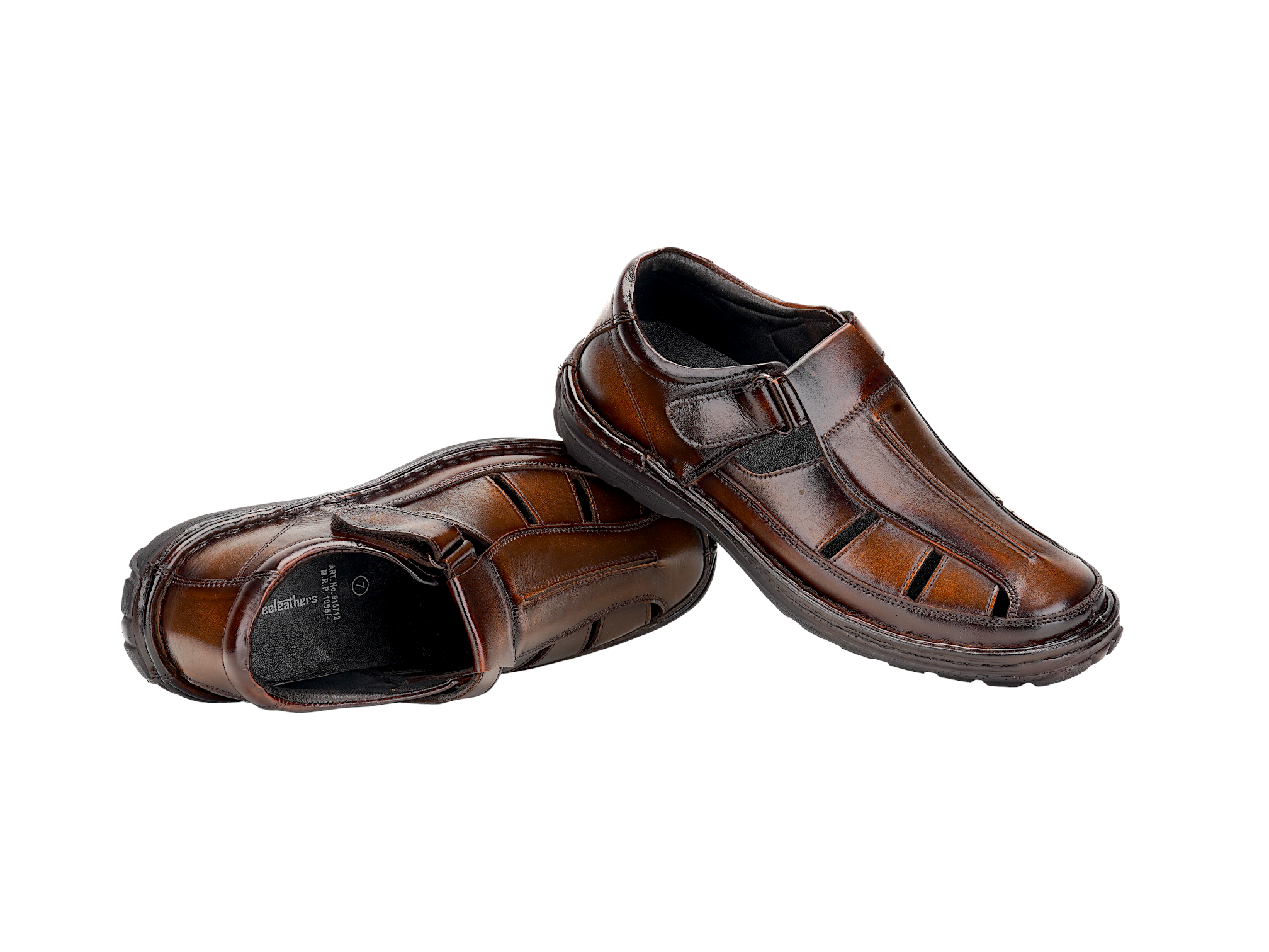 Crafted from premium genuine leather, the upper delivers a rich finish, durability, and a timeless look. The TPR sole with PU footbed ensures flexibility, strong grip, and long‑lasting comfort. Featuring a comfort insole, this fisherman sandal provides excellent support for extended wear throughout the day.