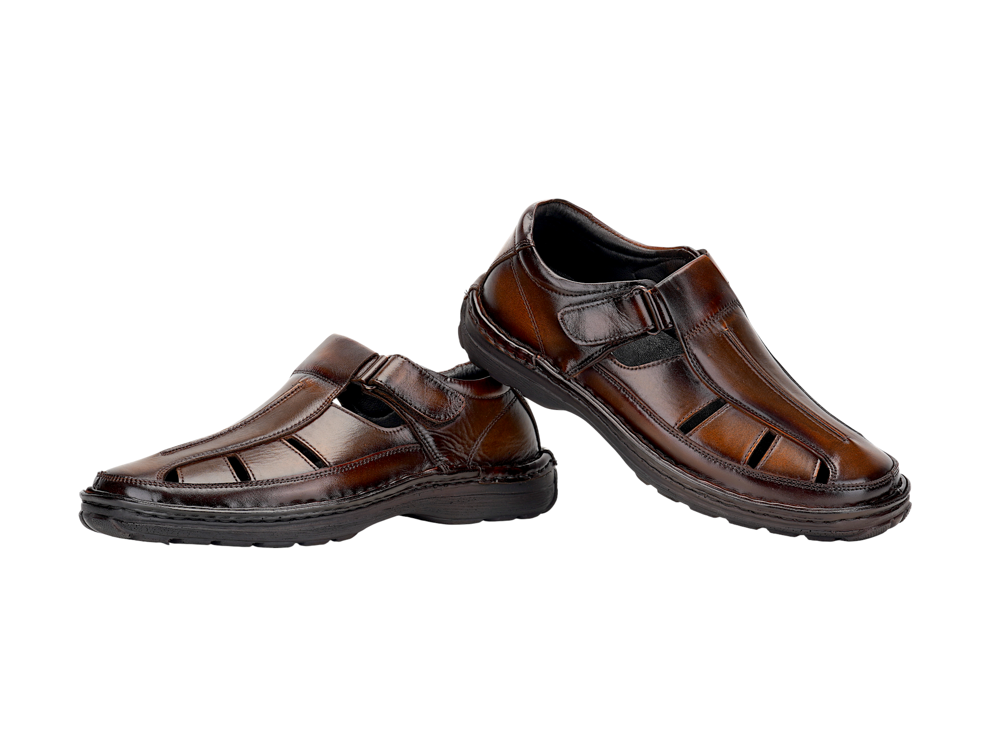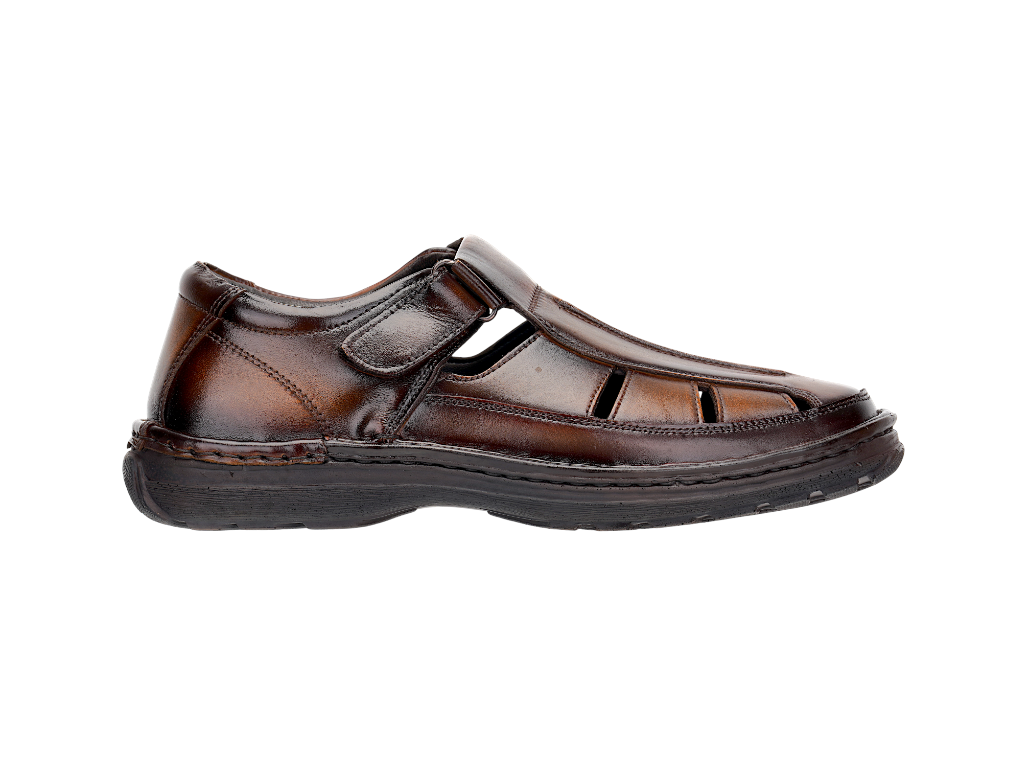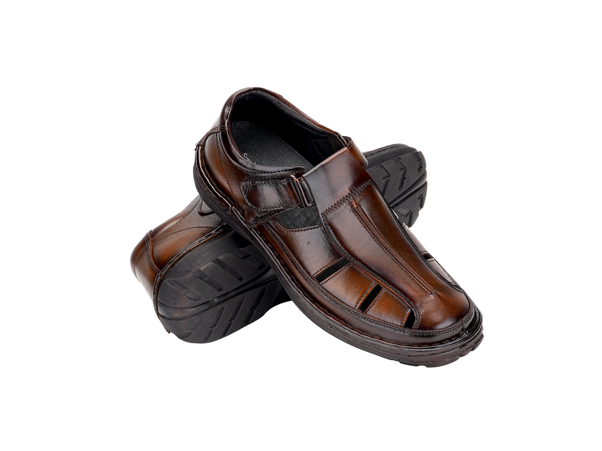 Crafted from premium genuine leather, the upper delivers a rich finish, durability, and a timeless look. The TPR sole with PU footbed ensures flexibility, strong grip, and long‑lasting comfort. Featuring a comfort insole, this fisherman sandal provides excellent support for extended wear throughout the day.