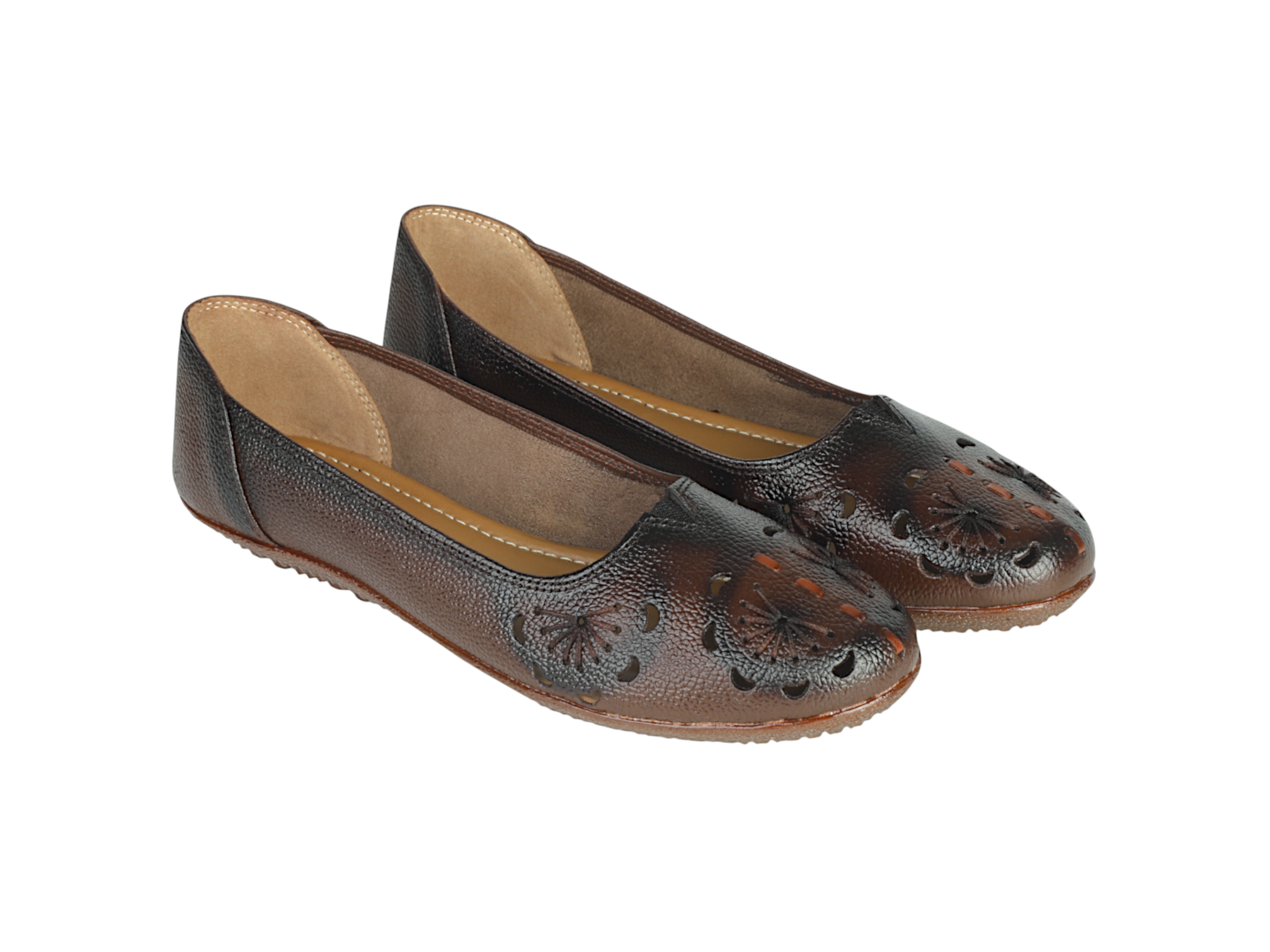 Model No - 996123 Mrp - 799/- Size - 36 - 42 LADIES FLAT LEATHER BELLY Upper Material - GENUINE LEATHER Sole - TPR