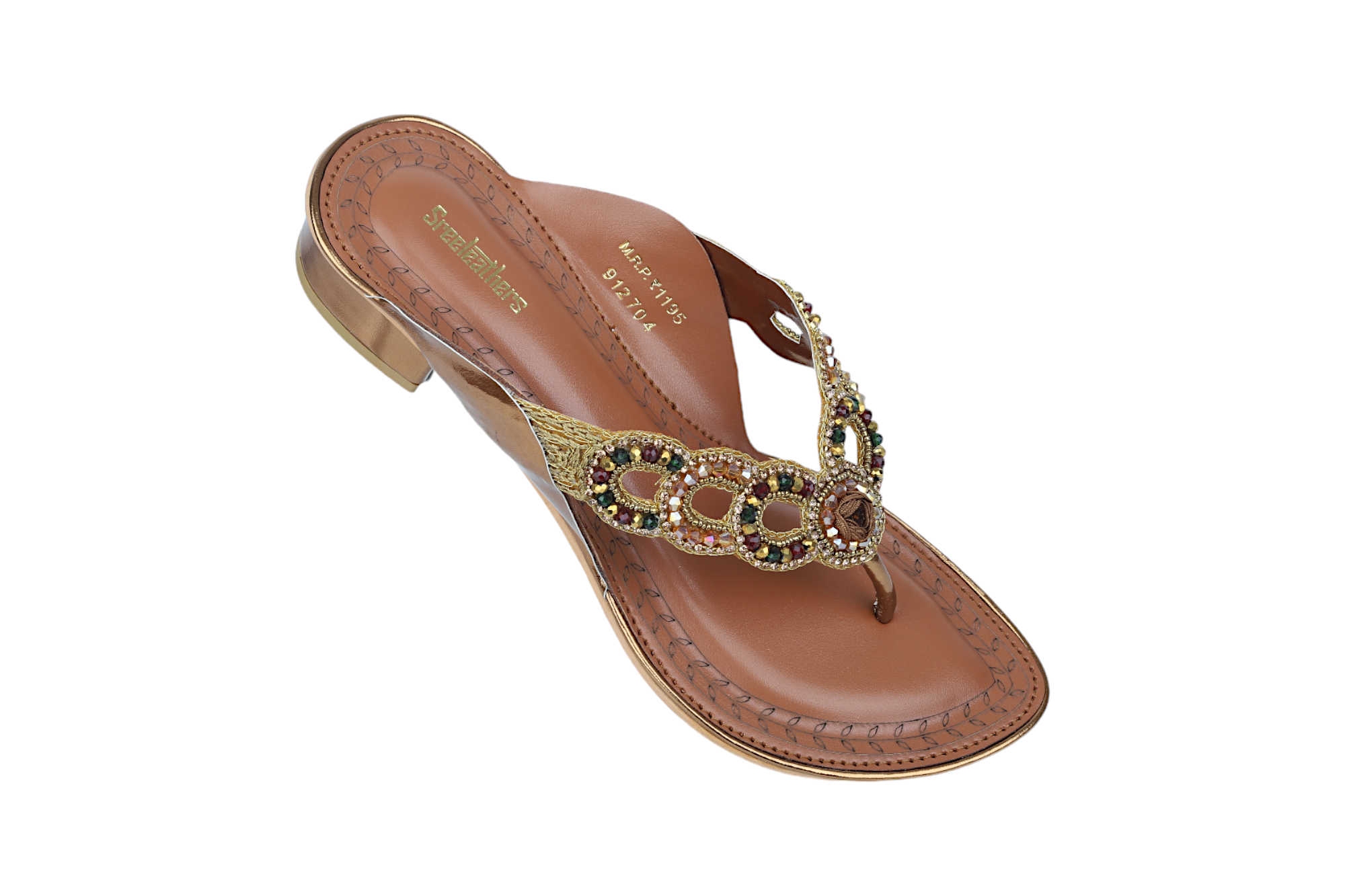 Step out in style with SREELEATHERS Premium Ladies fancy heel chappal. Crafted from premium materials, this beautiful chappal adds a touch of elegance to any wardrobe. With its comfortable fit and chic detailing, this chappal is perfect for any occasion.