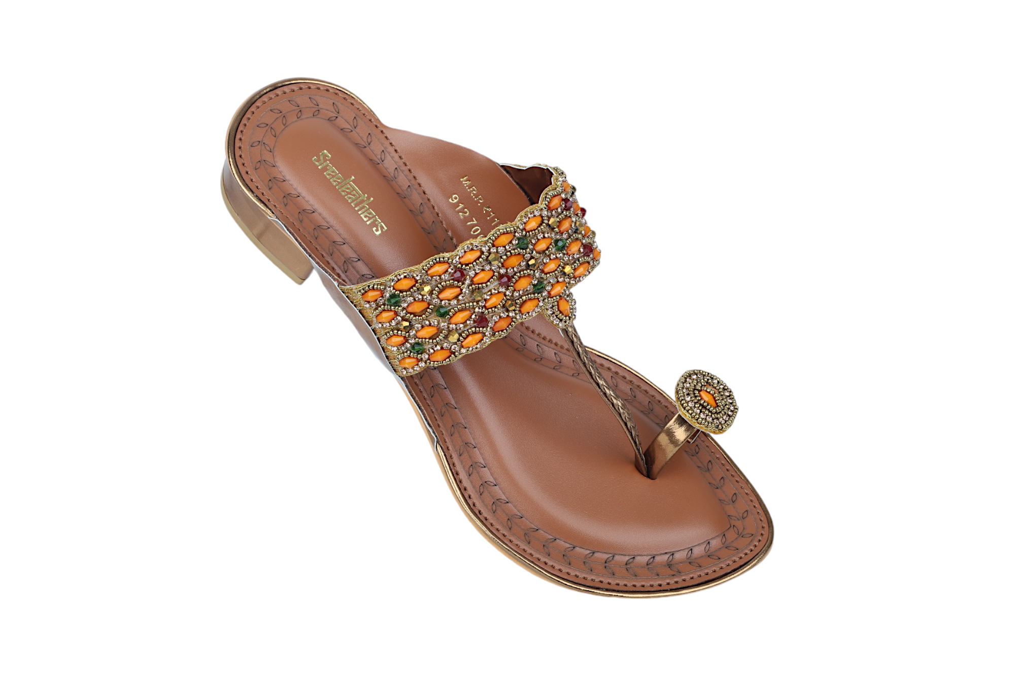 Step out in style with SREELEATHERS Premium Ladies fancy heel chappal. Crafted from premium materials, this beautiful chappal adds a touch of elegance to any wardrobe. With its comfortable fit and chic detailing, this chappal is perfect for any occasion.