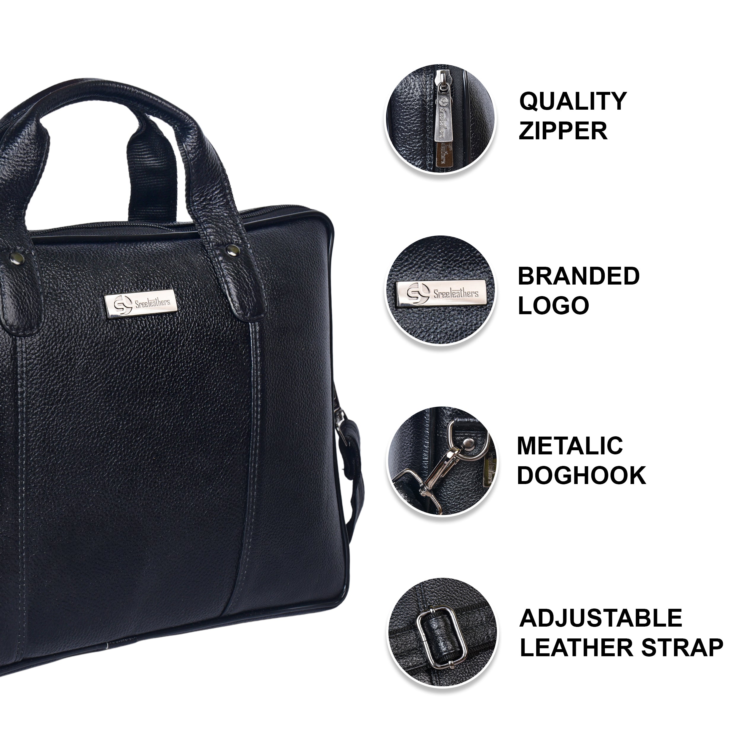 The sturdy top handles and adjustable shoulder strap provide versatile carrying options—ideal for office, meetings, and business travel.