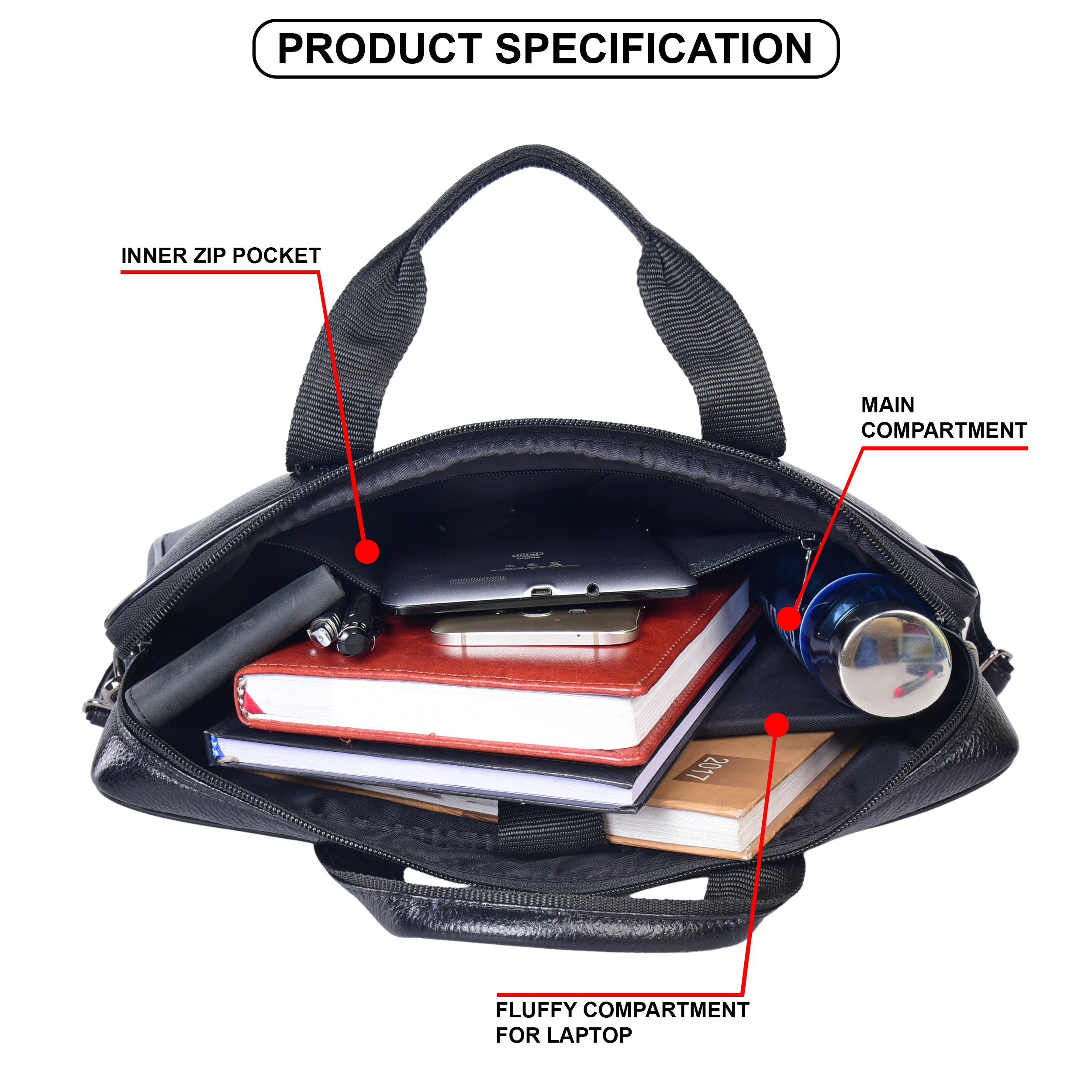 Designed with two spacious main compartments, it provides organized storage for your laptop, files, documents, charger, diary, and daily essentials. The dedicated laptop sleeve keeps your device secure, while the soft cotton inner lining ensures added protection.