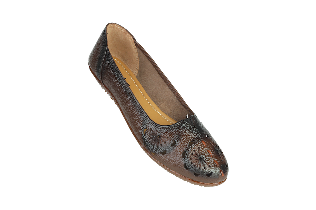 Model No - 996123 Mrp - 799/- Size - 36 - 42 LADIES FLAT LEATHER BELLY Upper Material - GENUINE LEATHER Sole - TPR