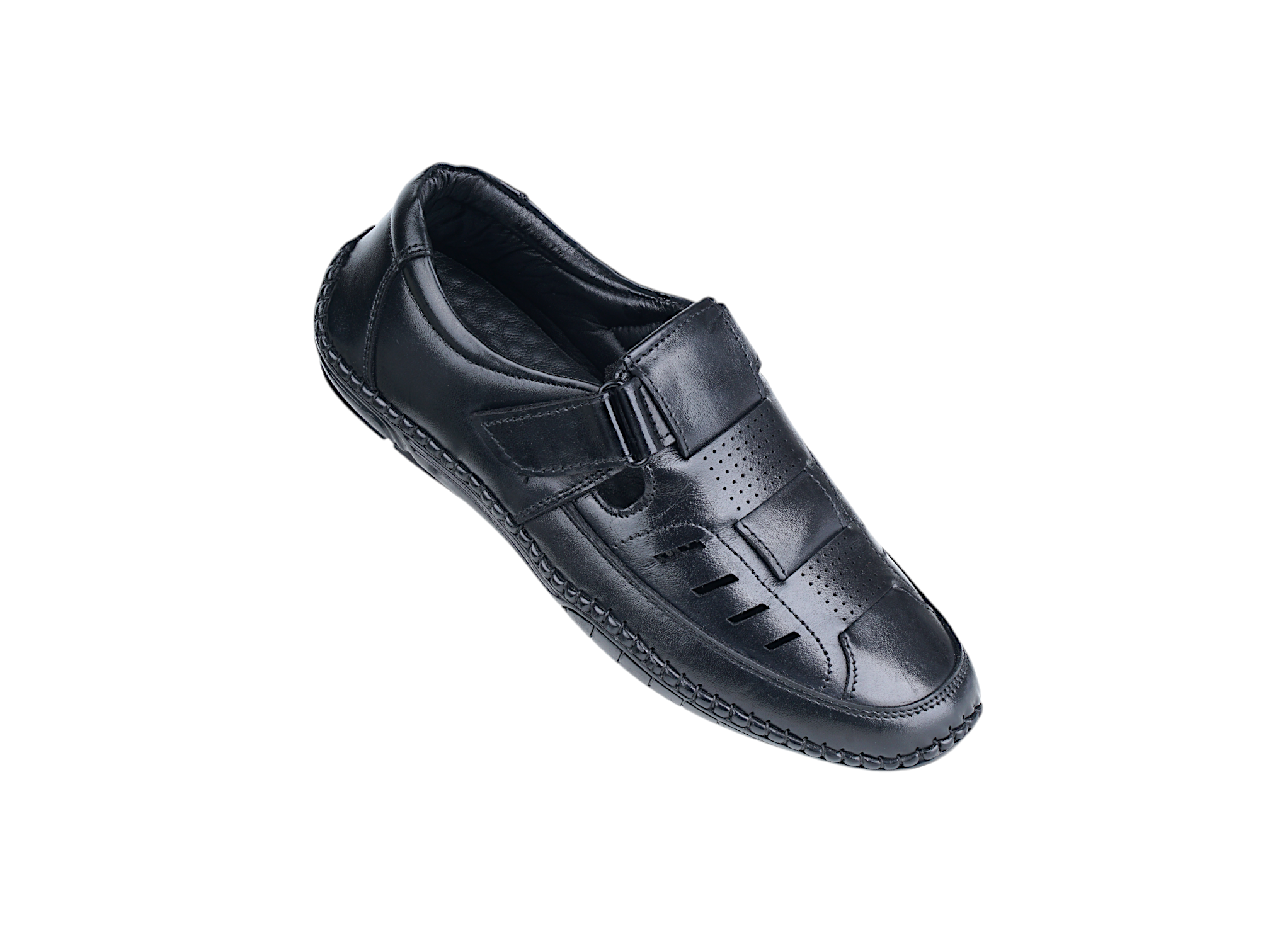 Wear these contemporary men’s sandals crafted in leather and sole made up of PU. To complete the look for every occasion, style these SREELEATHERS fisherman sandals with casual outfits. It has a back-strap and adjustable velcro closure that provides grip to the feet on any surface.