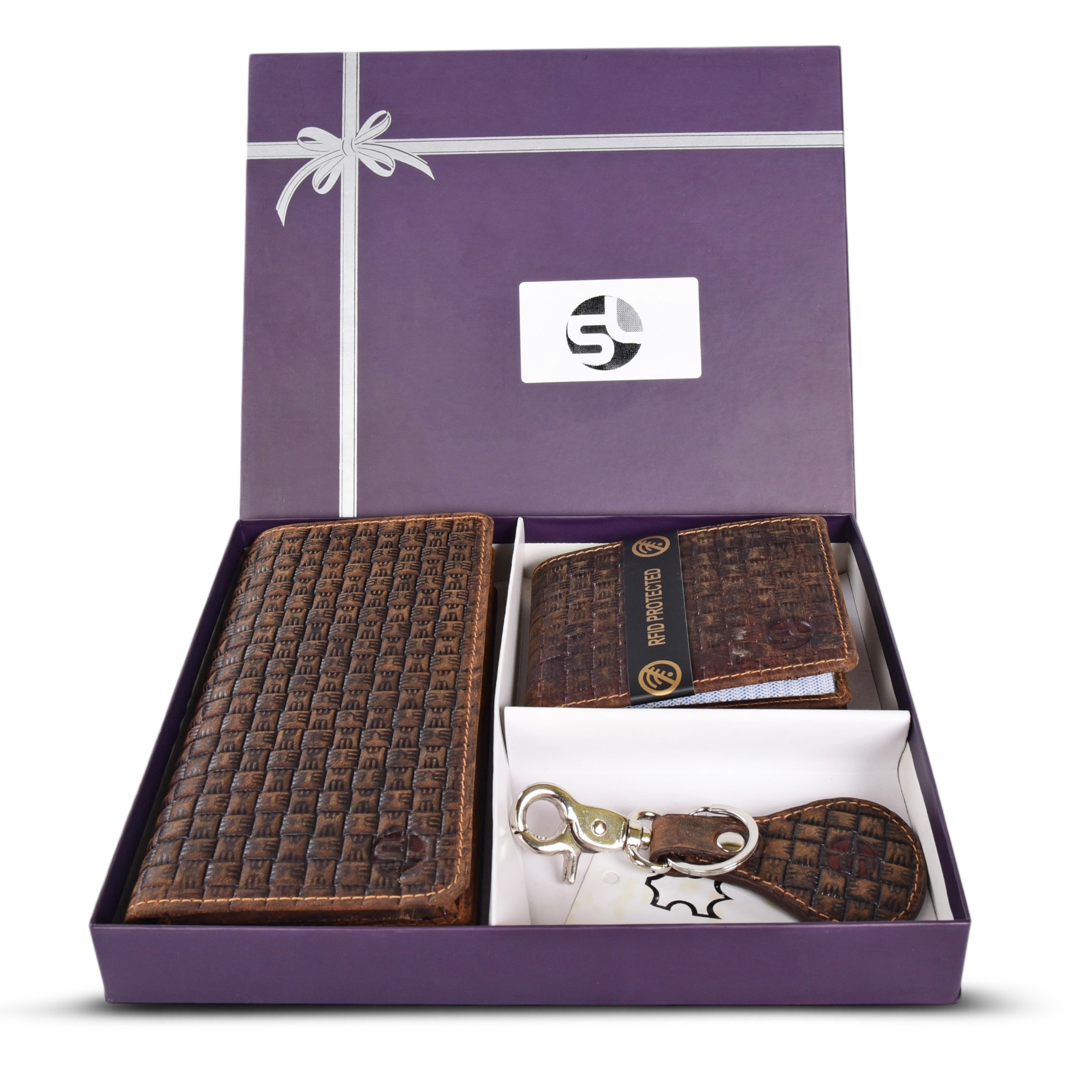 WALLETS WITH KEY RING GIFT COMBO 991753 (RFID) (BROWN)